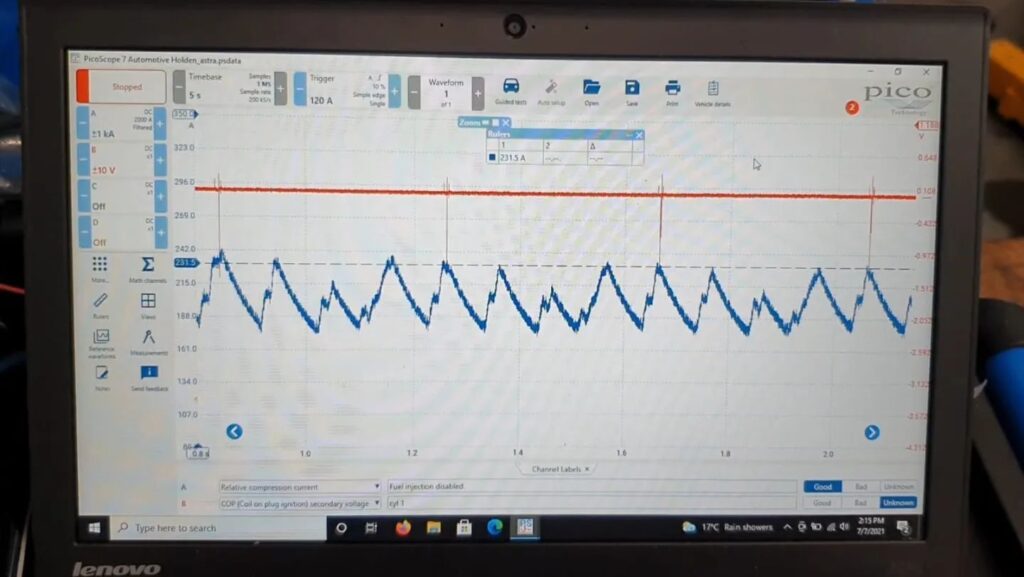 Using our picoscope to find the fault with this Jeep