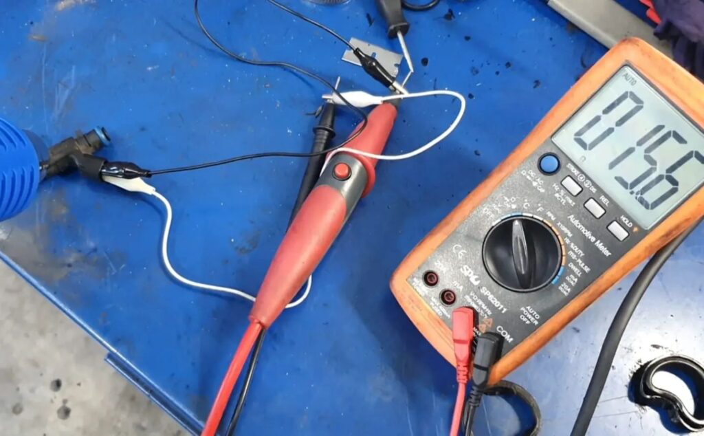 On the bench with a multimeter connected, we checked the resistance when cold, and then applied a heat gun to it to watch the resistance come down to normal.
