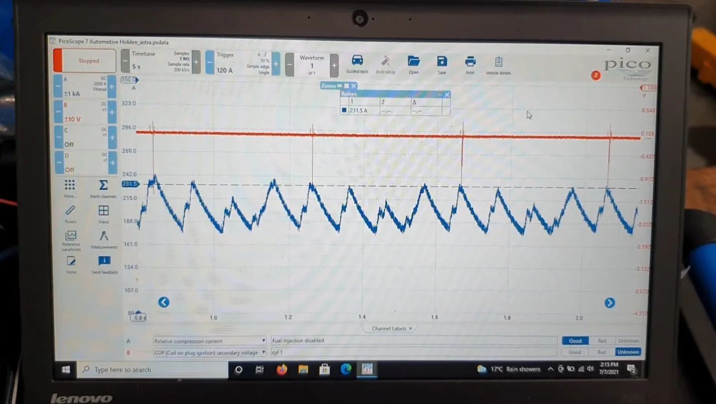 Holden Astra as you can see by one lower compression peak compared to the other three compression peaks.