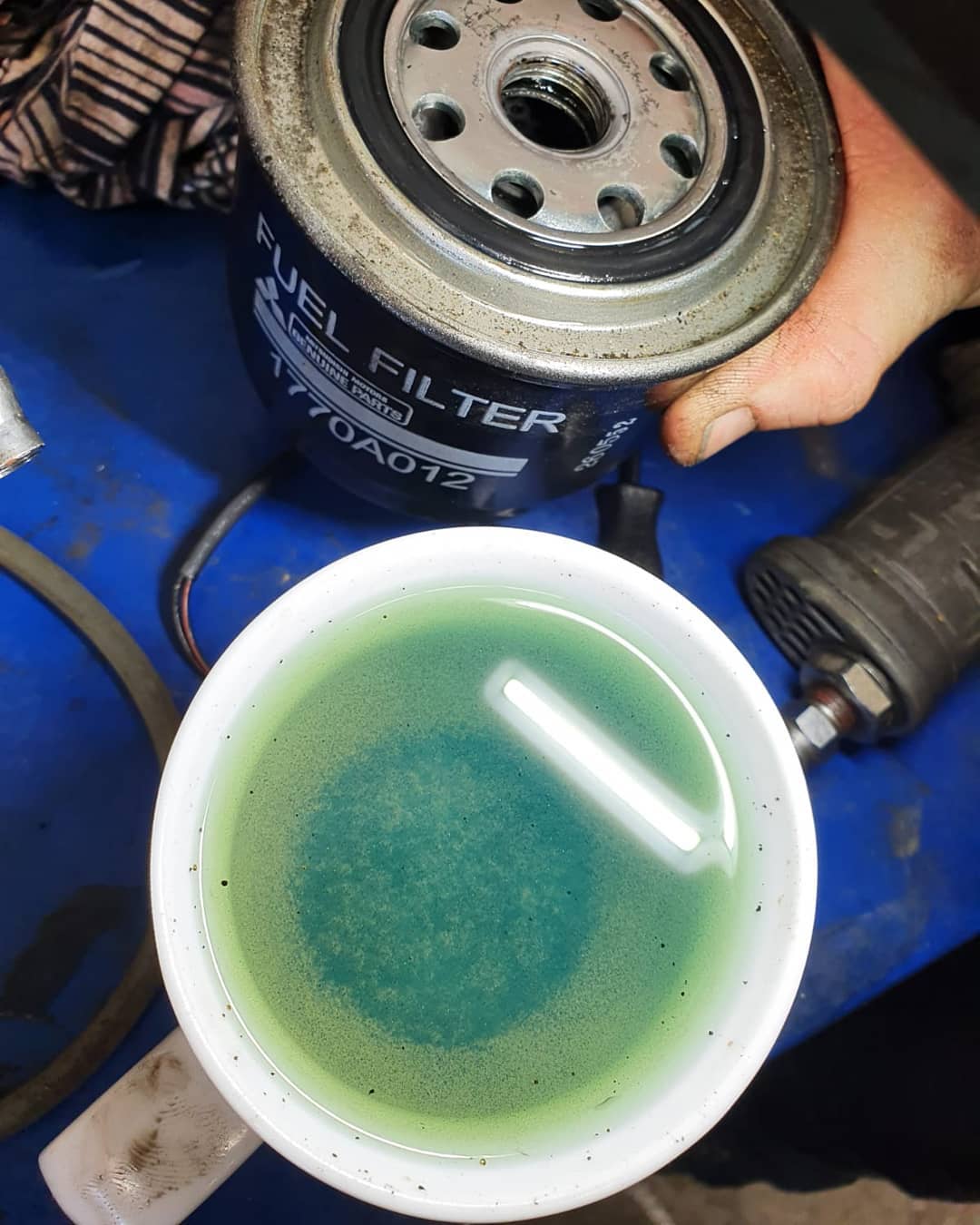 A quick removal and visual inspection of the fuel filter, showed it was completely blocked and this is just some of what came out when turned upside down.